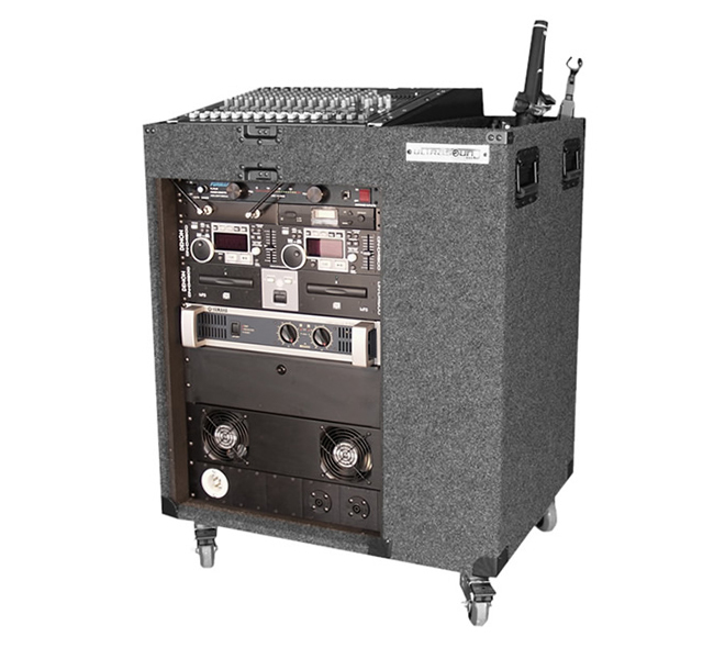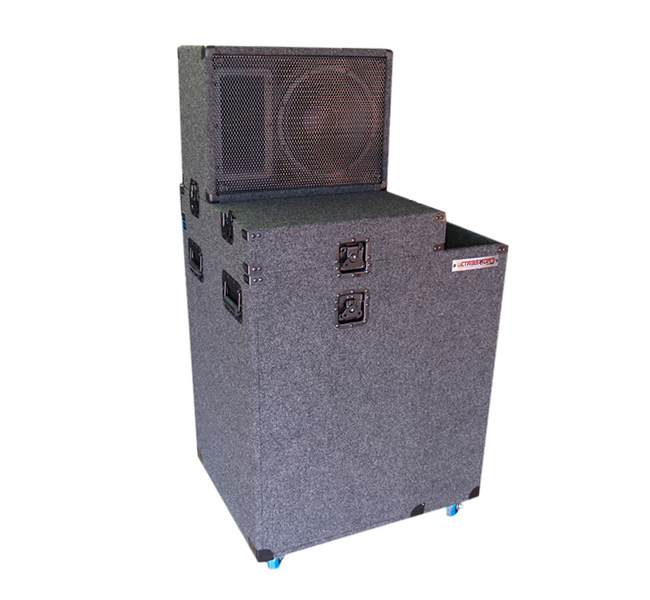 • Speaker cabinets lock on top of equipment rack for easy transport